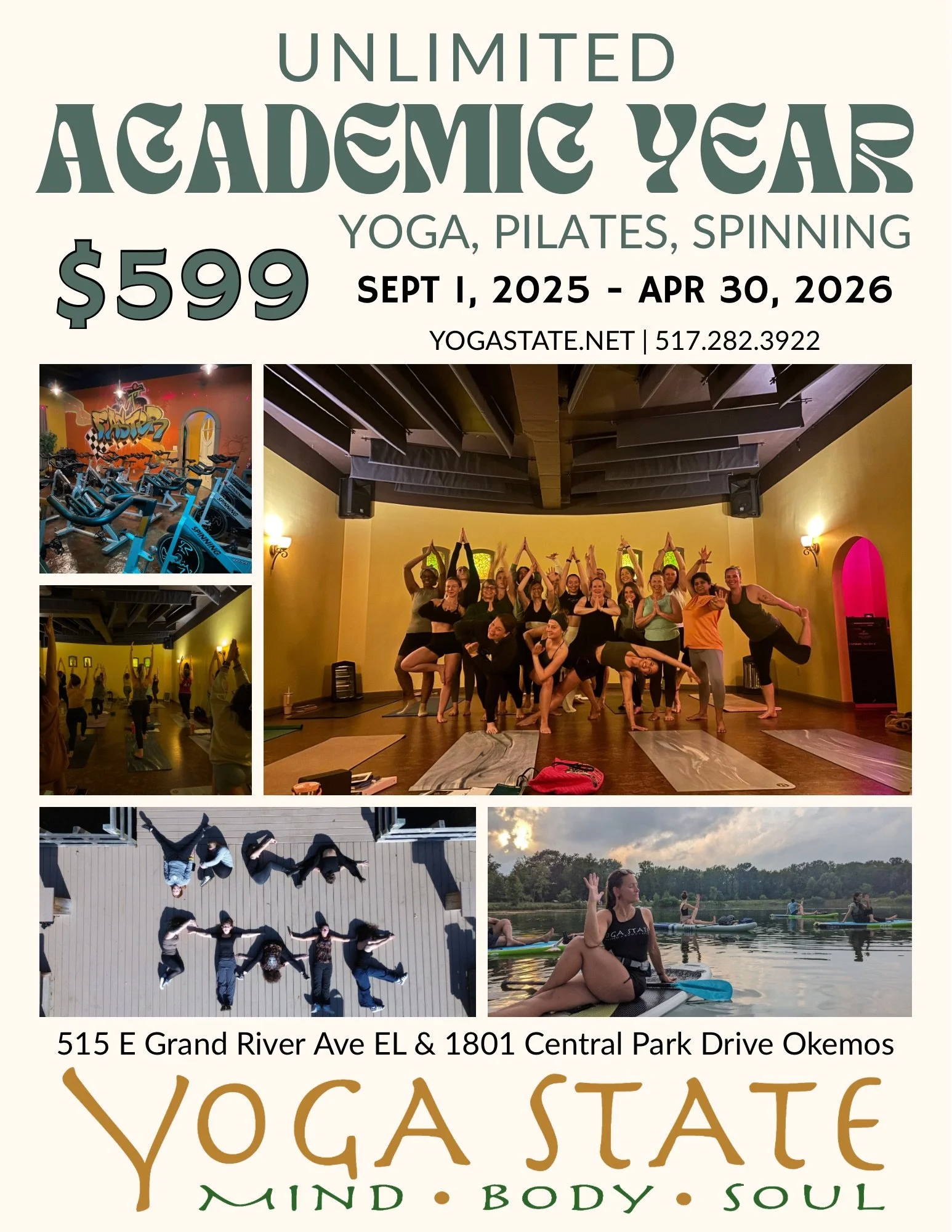 Welcome to East Lansing & Okemos areaβs only Yoga, Pilates, Spinning, Retreats & SUP studio!
